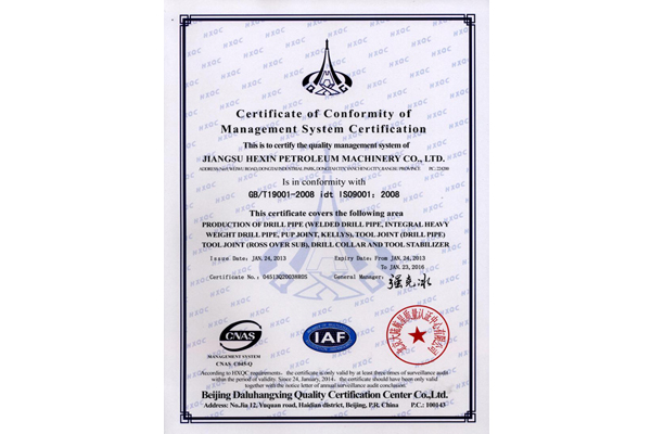 高抗扭高强度石油钻杆接头证书