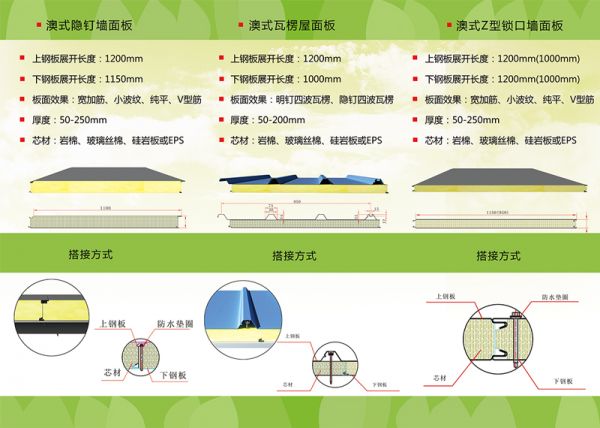 | 岩棉(玻璃丝棉)防火净化板两面采用钢板,四周采用冷弯型材框架,芯材可用无机质的岩棉或玻镁板夹岩棉。该产品表面平整美观、隔音、绝热、保温、抗震、防火性能好、几何尺寸准确、安装方便、省时省工。 |