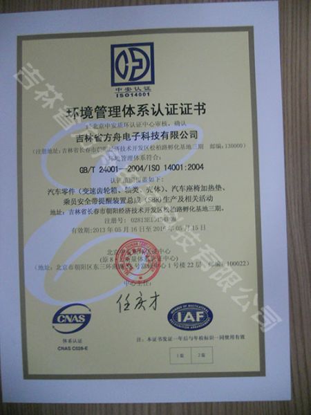 环境管理体系认证证书