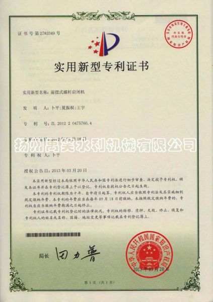 | 销售单位: 扬州禹笑水利机械有限公司 |