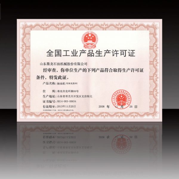 产品名称: 全国工业产品生产许可证(抽油机) |