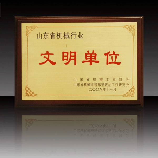 产品名称: 山东省机械行业文明单位 |
