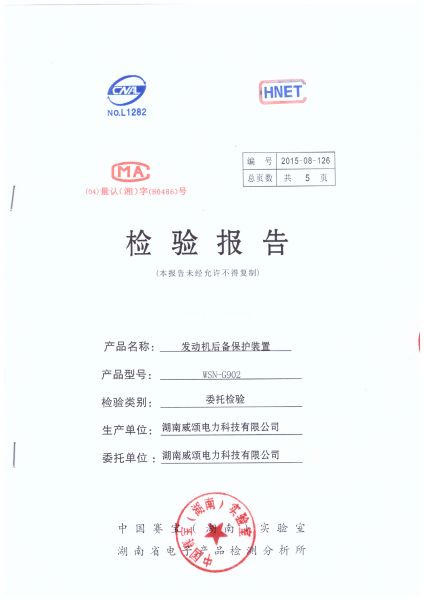 发动机后背保护装置检测报告WSN-G902