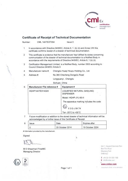 欧洲CE认证证书-CNG加气机