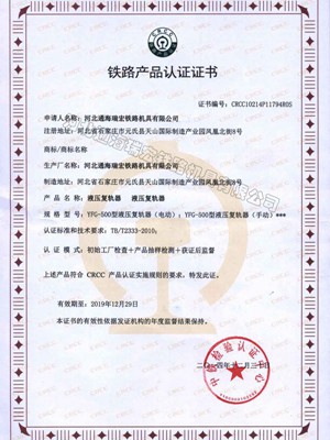 铁路产品认证证书